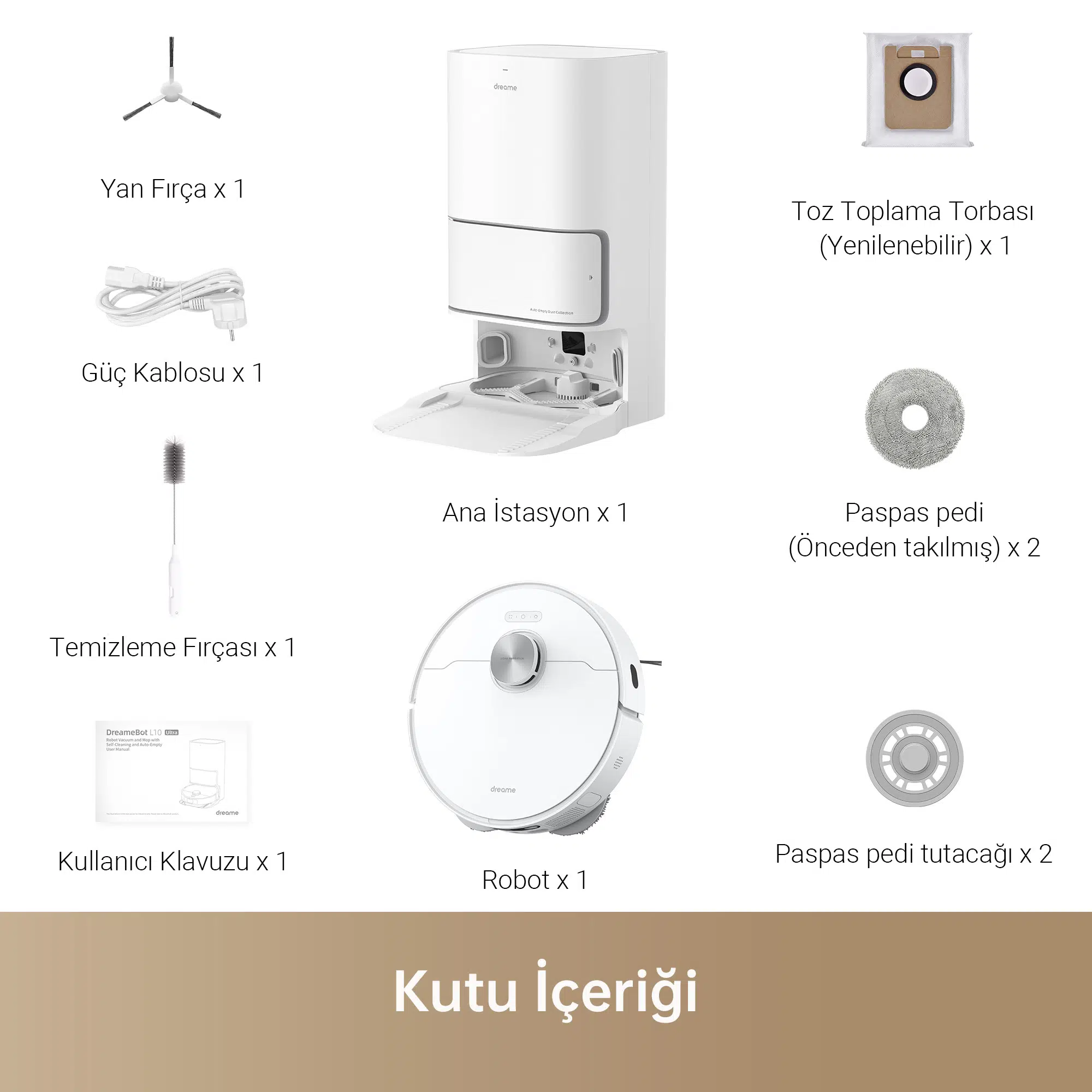 | Etiketler | Dreame L10 Ultra Robot Süpürge ve Otomatik Boşaltma Sistemli Paspas, Kendi Kendini Temizleme, 5300Pa, LDS Navigasyon, 3D Haritalama, Halı ve Sert Zeminler için Uygulama Kontrolü |