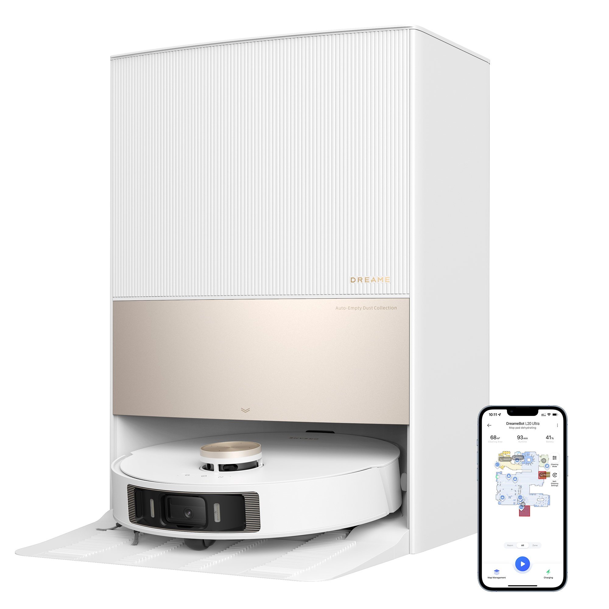 Dreame L20 Ultra ile günlük temizliğinizi otomatikleştirebilir, bu sayede eve geldiğinizde temizlenmiş zeminlere merhaba diyebilirsiniz. L20 Ultra'nın tam otomatik temizlik gerçekleştirmesi için otomatik boşaltma, mop yıkama ve kurutma, su doldurma, çözüm ekleyici ve daha fazla özelliklerle donatılmıştır.
