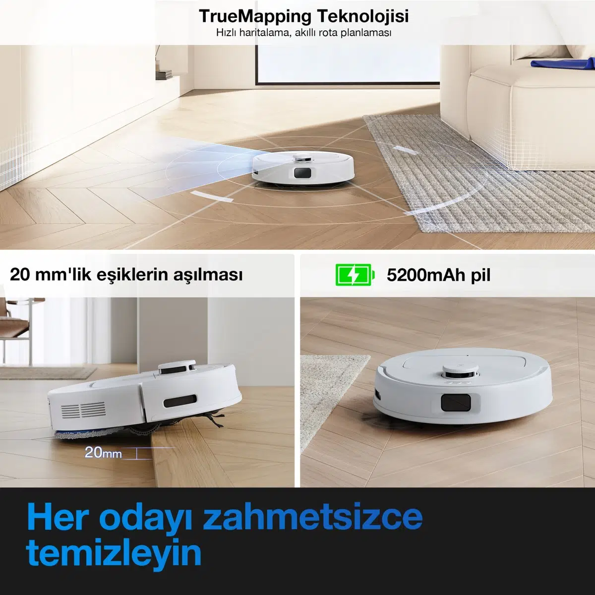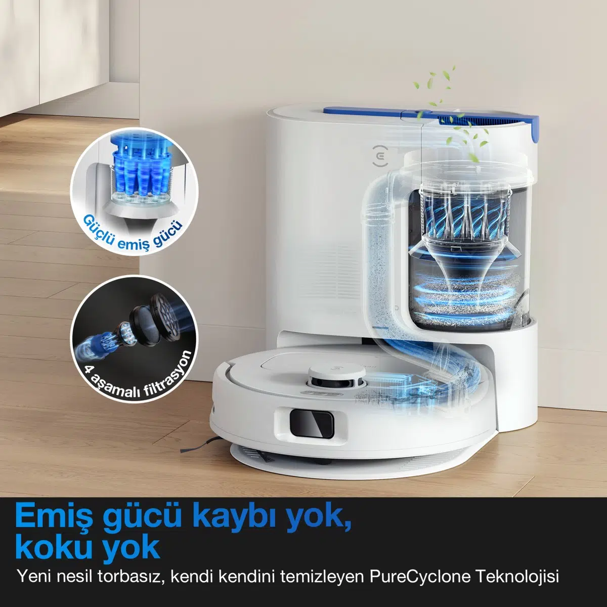 Ecovacs Deebot N20e Plus Robot Süpürge ve Paspas, Otomatik Toz Torbasız Boşaltma İstasyonu, 11000Pa