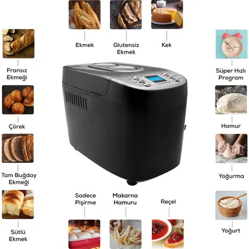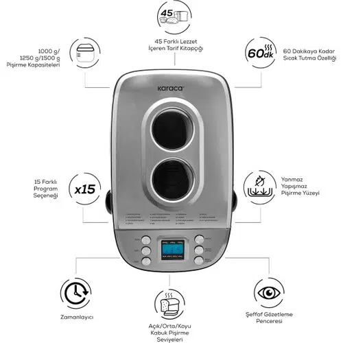 | Etiketler | Karaca Bakexl Ekmek Reçel Yoğurt Yapma Makinesi Inox 1500 G 45 Tarifli Kitapçıklı |