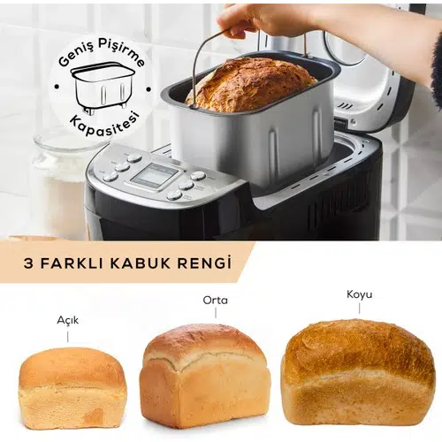 Karaca BakeXL Ekmek, Reçel, Yoğurt Yapma Makinesi Inox, 1500 g, 45 Tarifli Kitapçıklı