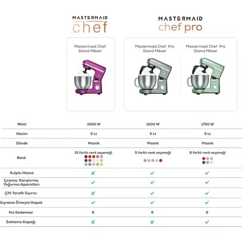 | Etiketler | Karaca Mastermaid Chef Pro Çift Kollu Stand Mikser Cool Gray 1750 W |