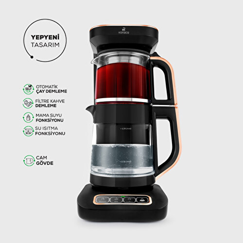 Tüm bu rahat kullanımın yanında, çay demliği ve su ısıtıcısının cam yapısı sayesinde sağlıklı ve uzun ömürlü bir kullanım sunar.