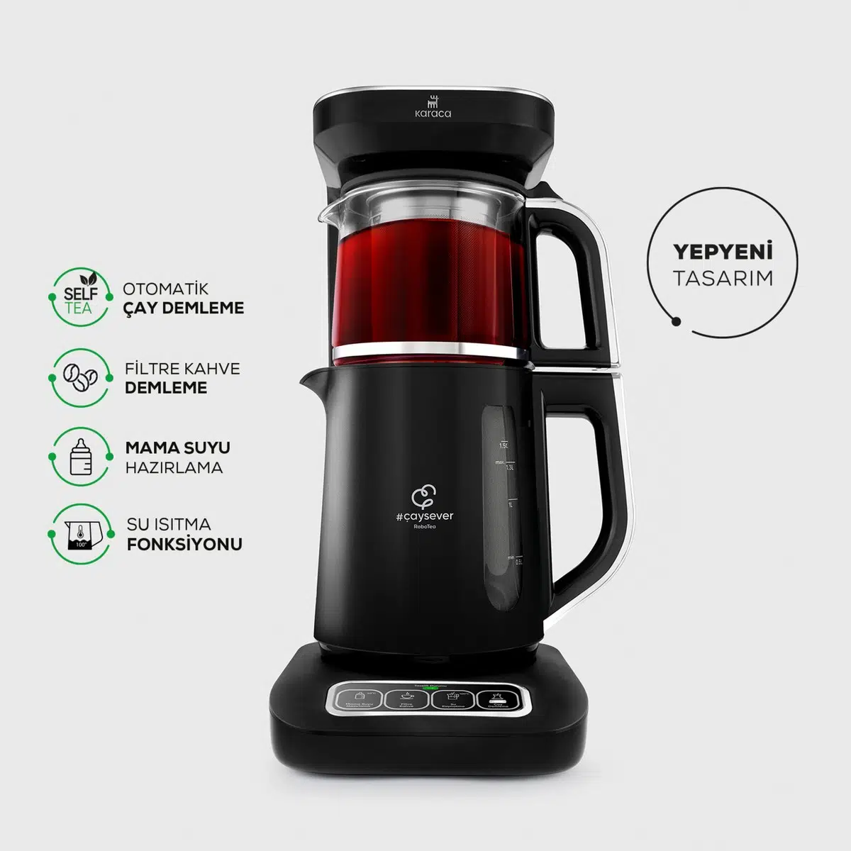 Farklı ısıtma derecelerine sahip olan Çaysever Robotea Pro ile 40 derecede bebeğiniz için ideal mamalar hazırlayabilir, 100 derecede su kaynatarak lezzetli bitki çayları ve sıcak içecekler yapabilirsiniz. Ayrıca filtre kahve demleyebileceğiniz Çaysever Robotea Pro ile 40 dakika boyunca taze kahvelerin keyfini çıkarabilirsiniz.
