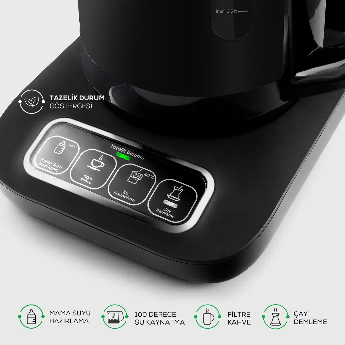 Otomatik sıcak tutma özelliği ile çay ya da kahve keyfiniz boyunca çayınızı, kahvenizi ve suyunuzu sıcak tutar.