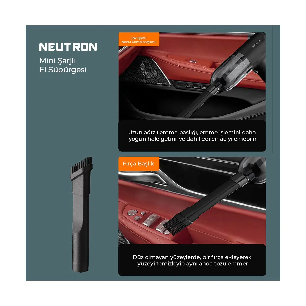 Neutron Mini, hızlı ve etkili temizlik için tasarlanmıştır. Zamanınızı daha verimli kullanmanıza yardımcı olur, böylece aracınızın içini her zaman tertemiz tutabilirsiniz.