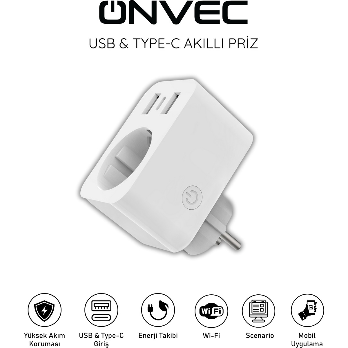 .enerji monitörü ve aşırı yük koruması gibi özelliklerle donatılmış bu priz, evinizdeki enerji kullanımını optimize etmenize yardımcı olur. Çift usb portu ve bir type-c bağlantısı sayesinde, mobil cihazlarınızı da hızlı ve güvenli bir şekilde şarj edebilirsiniz. Tüm aile bireylerinin bu akıllı prizi onvec mobil uygulama üzerinden kullanmasını sağlayan paylaşım fonksiyonu, evdeki teknolojiyi herkes için erişilebilir ve kullanışlı hale getirir.